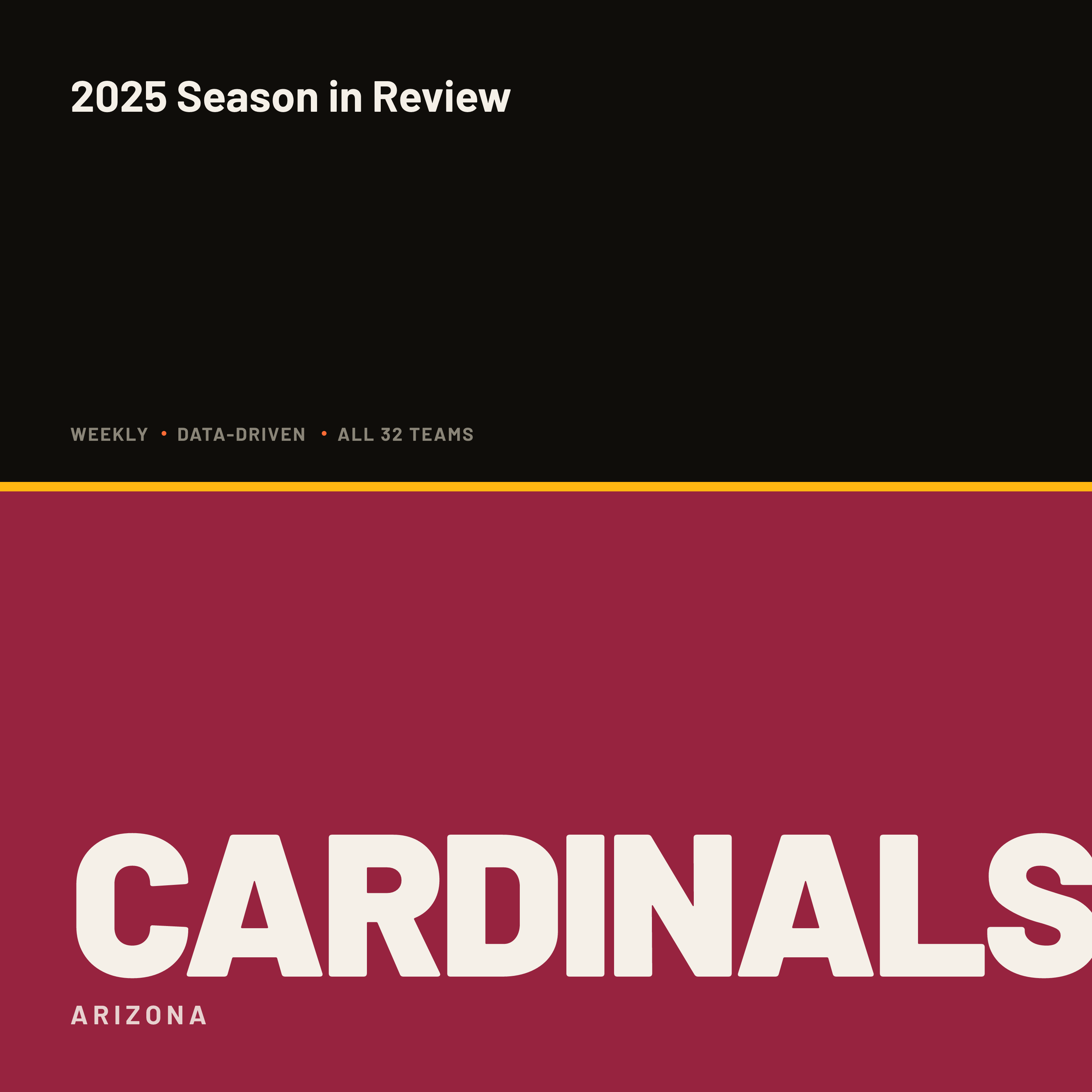 The 2025 Arizona Cardinals finished three and fourteen, missed the playoffs for the fourth straight year, and set a franchise record for losses in a single season. They started two and zero — a road win over the Saints in Week 1, a home win over the Panthers in Week 2 — and then the floor collapsed. Arizona went one and fourteen the rest of the way, including a nine-game losing streak to close the year. Five of those losses came by a combined thirteen points, capped by a Week 5 home collapse to the Titans after leading twenty one to three. When the Bucs finished them off in Week 13 and ended their playoff hopes, this had become the worst four-year stretch since the franchise moved to Arizona — and one day later, head coach Jonathan Gannon was fired. The Cardinals got muffed.