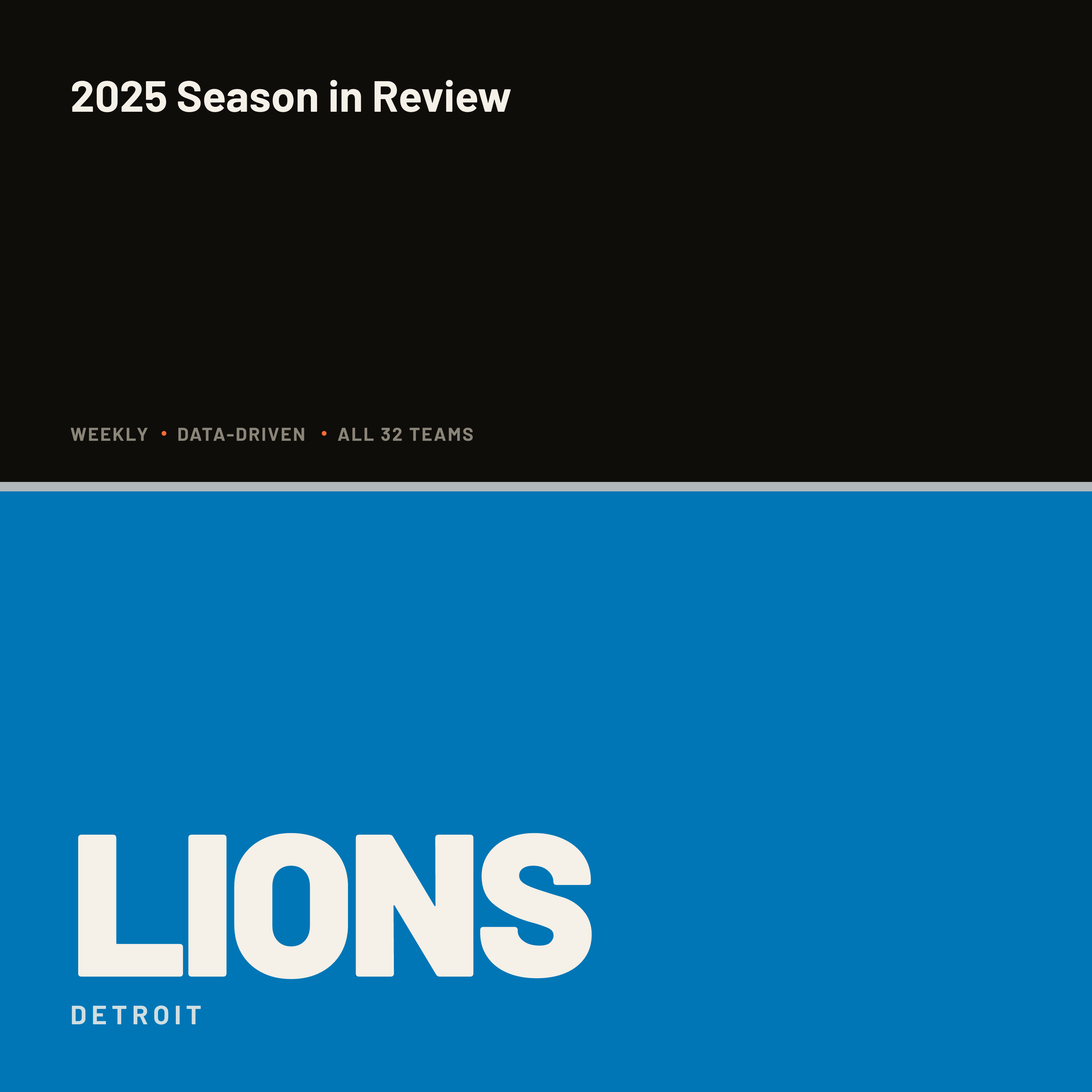 The Detroit Lions finished 2025 at nine and eight, dead last in the NFC North, missing the playoffs for the first time since 2022 — a stunning fall after going fifteen and two a year ago. This was the year the empire cracked. Detroit ripped out to a five-and-two start and looked every bit the NFC contender. Then the ceiling caved in. After losing offensive coordinator Ben Johnson to the Bears and defensive coordinator Aaron Glenn to the Jets, the offense never found its rhythm under first-year coordinator John Morton, and a late three-game skid against the Rams, Steelers, and Vikings closed the window. The Christmas Day loss at Minnesota in Week 17 — six turnovers, Jared Goff under siege all day — was the dagger, and Dan Campbell graded his own season, quote, a freaking F. The Lions didn't just lose games in 2025. They got muffed.