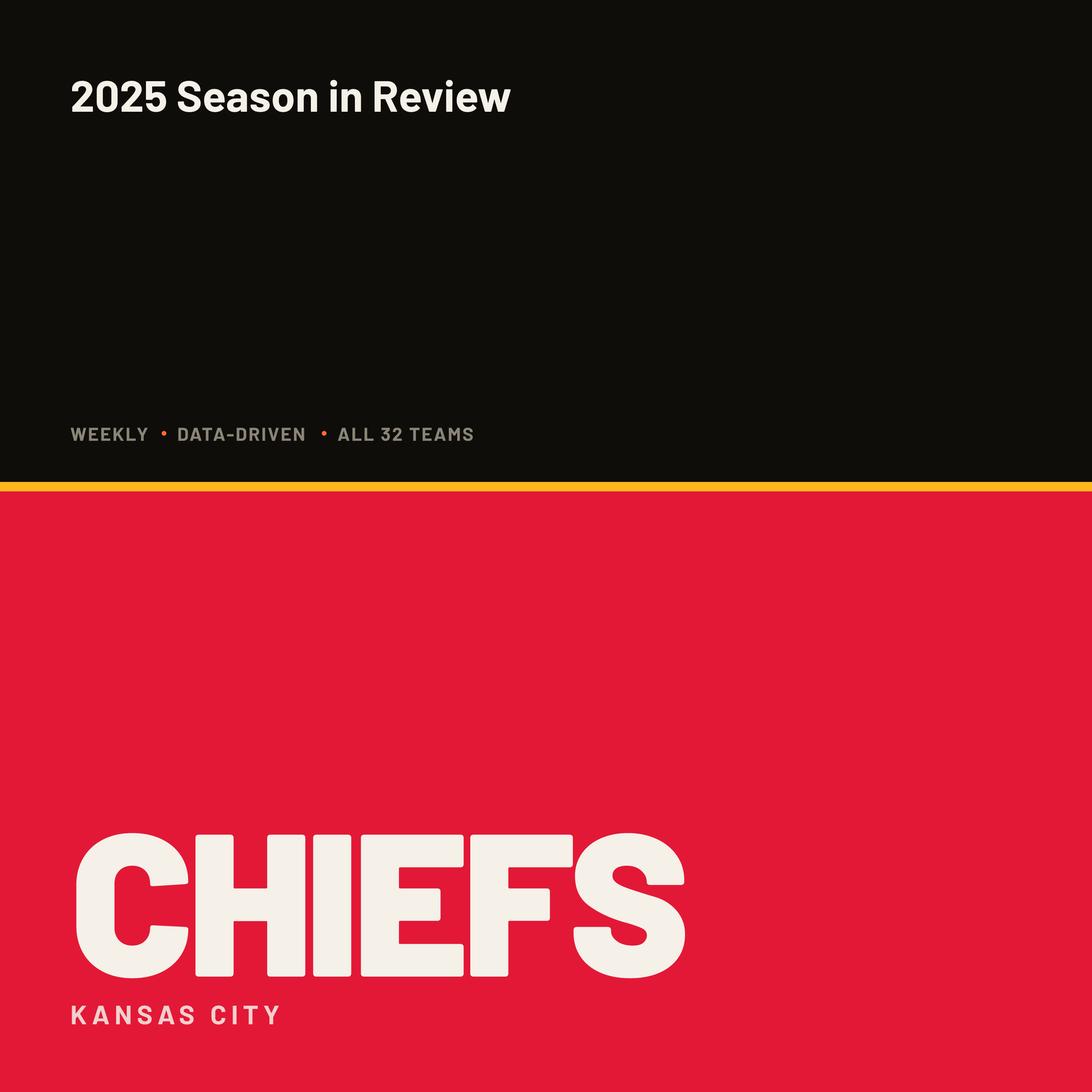 The Kansas City Chiefs finished 2025 at 6 and 11, missed the playoffs for the first time since 2014, and snapped a ten-year postseason streak that ranked second-longest in the NFL. The dynasty cracked. Three straight Super Bowl trips, nine straight AFC West titles, seven straight conference championship games — gone, in a season defined by close-game futility and a Week 15 ACL tear that ended Patrick Mahomes' year and Kansas City's. They went 1 and 9 in one-score games, got swept by the Denver Broncos and Los Angeles Chargers, and lost their final six straight, including an 0 and 4 December. The statement wins were there — a Week 4 beatdown of the Baltimore Ravens, a 31 to nothing shutout of the Las Vegas Raiders in Week 7 — but every time Andy Reid's team looked ready to roll, a fourth-quarter field goal flipped the other way. This wasn't a team that got blown out. This was a team that got muffed one possession at a time.