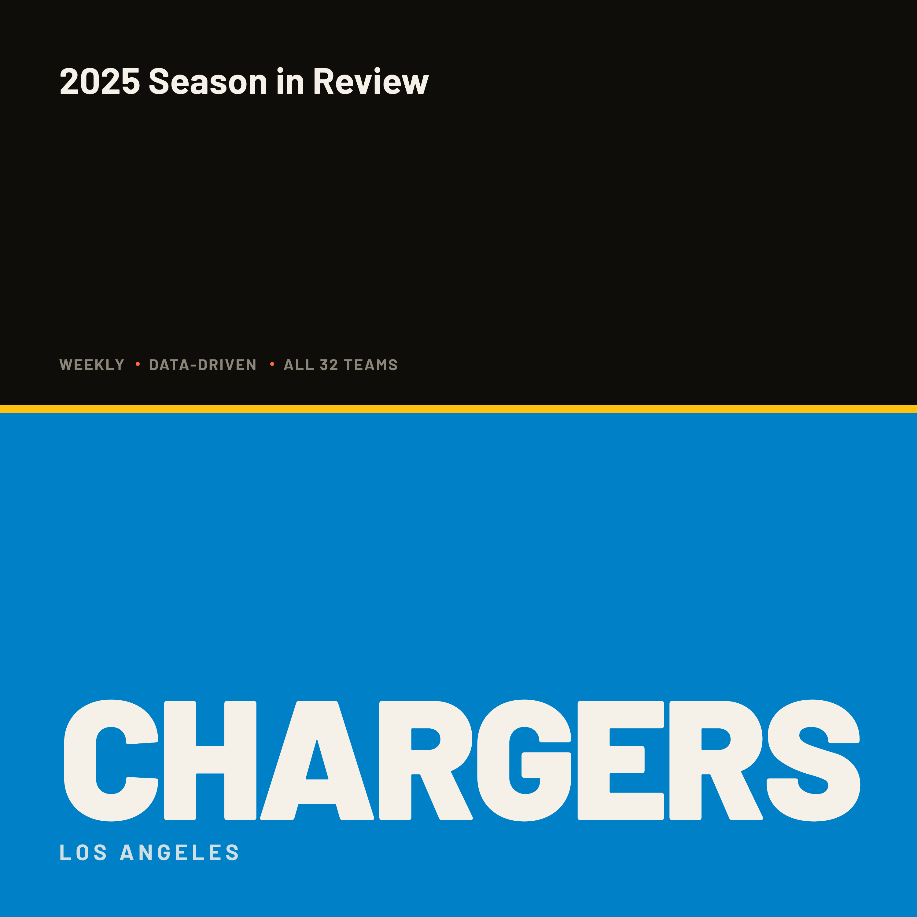 The Chargers finished 2025 at 11-6, grabbed the seven seed, then ran into a buzzsaw in Foxborough — a 16 to 3 Wild Card loss to the Patriots that ended the year in the first weekend. Year two of the Jim Harbaugh era started like a dream — three and oh out of the gate, including a Week 1 statement over the Chiefs — and it validated the floor this team has built. But the ceiling? That's where they got muffed. The offensive line turned into a MASH unit — Rashawn Slater gone for the year in August, Joe Alt lost in Week 9 — and what should have been a high-flying Herbert-led attack spent the back half scratching and clawing. Eleven wins is real. Back-to-back playoff berths for the first time since oh-eight and oh-nine is real. So is the fact that they still haven't ended a 15-year AFC West title drought or won a playoff game with Justin Herbert.