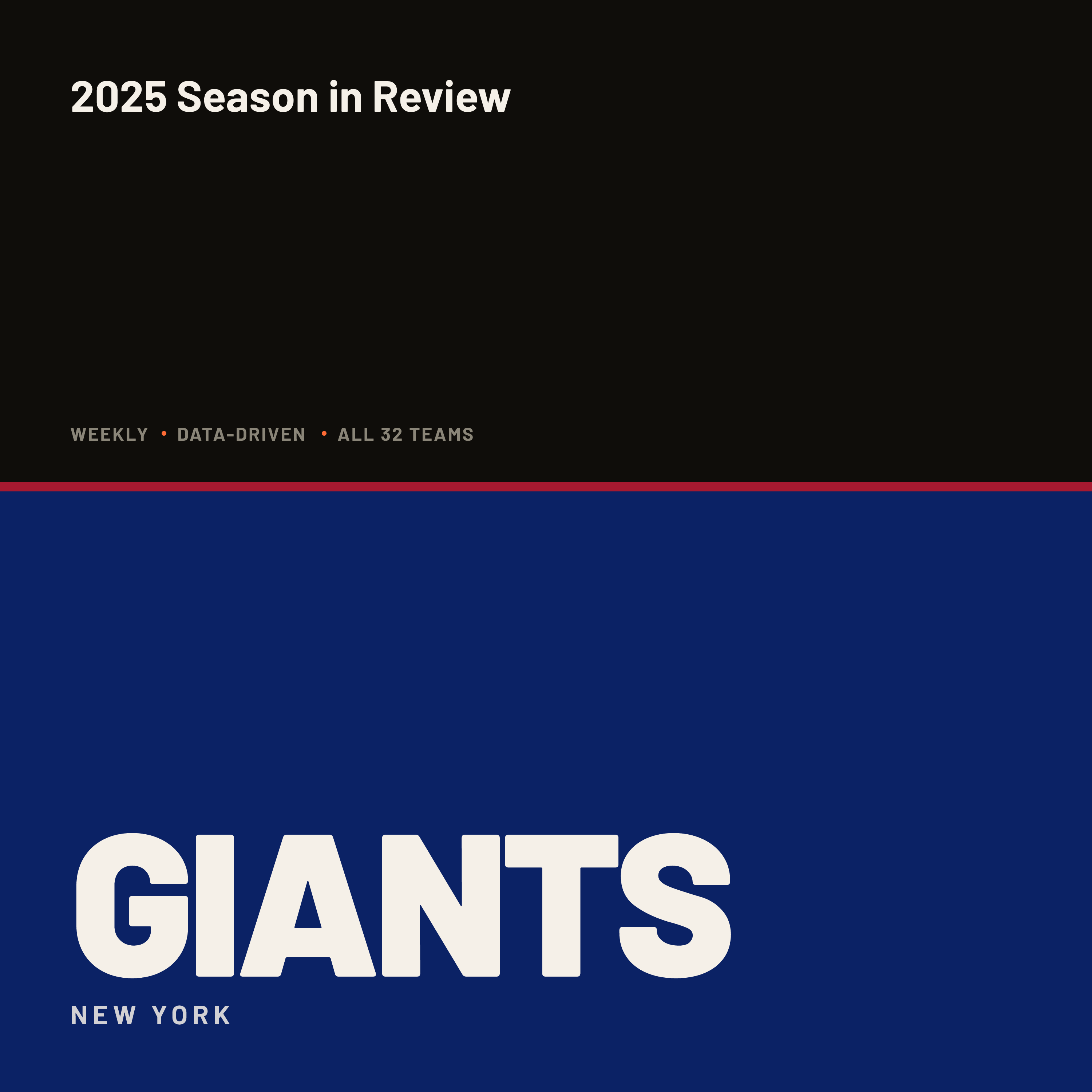 The New York Giants finished 2025 at four and thirteen, dead last in the NFC East, missing the playoffs for the third straight year and becoming the first NFL team to be first eliminated from postseason contention in back-to-back seasons since Houston in 2021 and 2022. This year got muffed every way a year can get muffed — seven one-possession losses, five blown double-digit leads, head coach Brian Daboll fired midseason after that Week 10 collapse in Chicago, and season-ending injuries to Malik Nabers and rookie running back Cam Skattebo that gutted the skill group. And yet the one thing that went right was the biggest thing — rookie quarterback Jaxson Dart took over in Week 4 and gave this franchise the first real hope at quarterback it's had in years. The arc was ugly losses bookended by two bright spots: a Week 6 beatdown of the Philadelphia Eagles where the Giants hung thirty-four, and a thirty-four to seventeen Week 18 win over Dallas to close the year. A transition season disguised as a lost one.