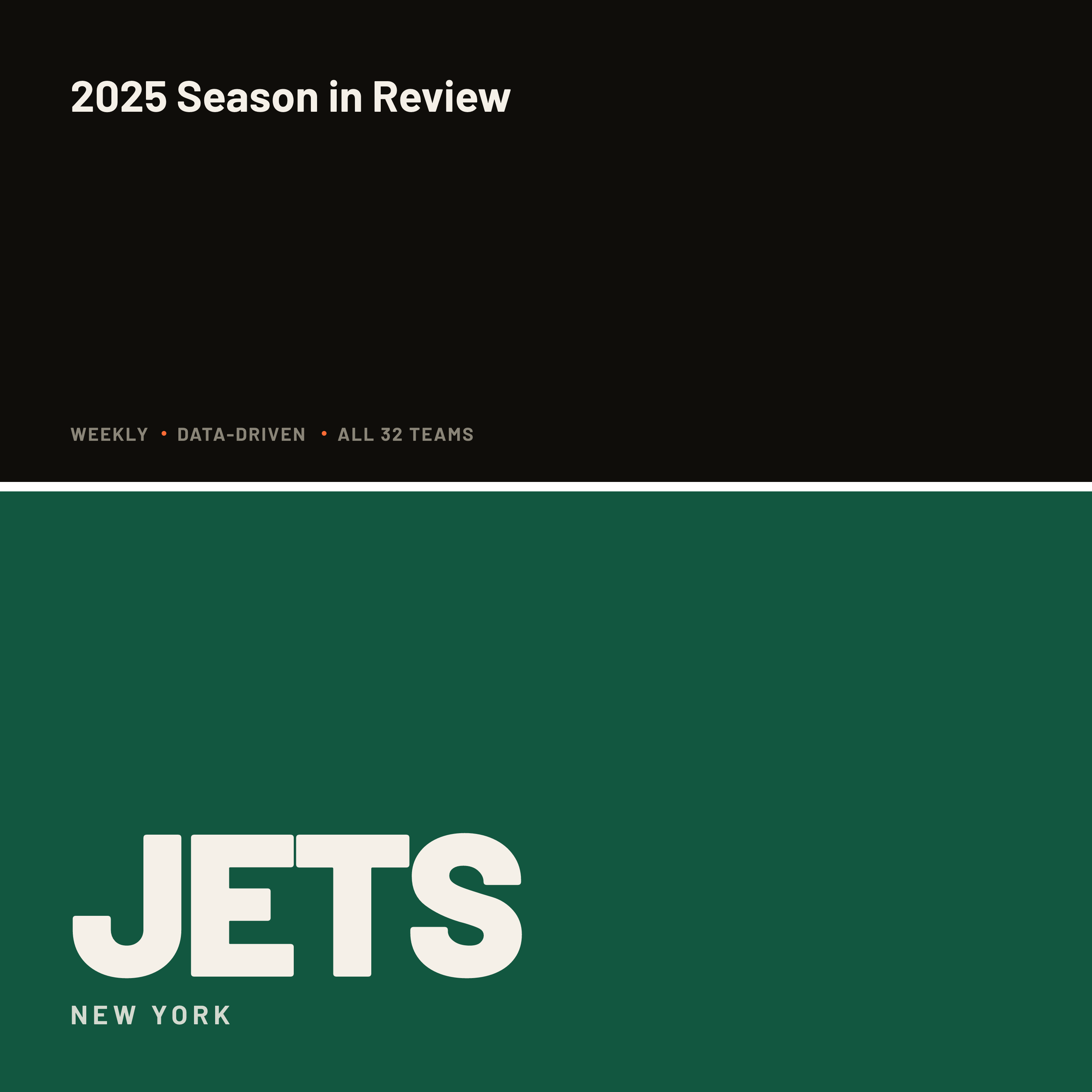 The team by the numbers is historic in the worst way. The Jets finished thirty-second in point differential, thirty-second in turnover differential, and thirty-second in yard differential — the first team ever to finish dead last in all three. They forced just three takeaways, and here's the stat that will follow this team forever: they became the first team in NFL history not to record a single interception in a season since the league began tracking them in 1933. The offense converted thirty-five percent of third downs and scored touchdowns on just thirteen percent of red-zone snaps — genuinely broken. Outside of the Bengals win, the Cleveland win in Week 10, and the Atlanta win in Week 13, this team was rarely competitive, dropping each of its final five games by twenty-three points or more. Not boom-or-bust — just bust, with three brief flashes.