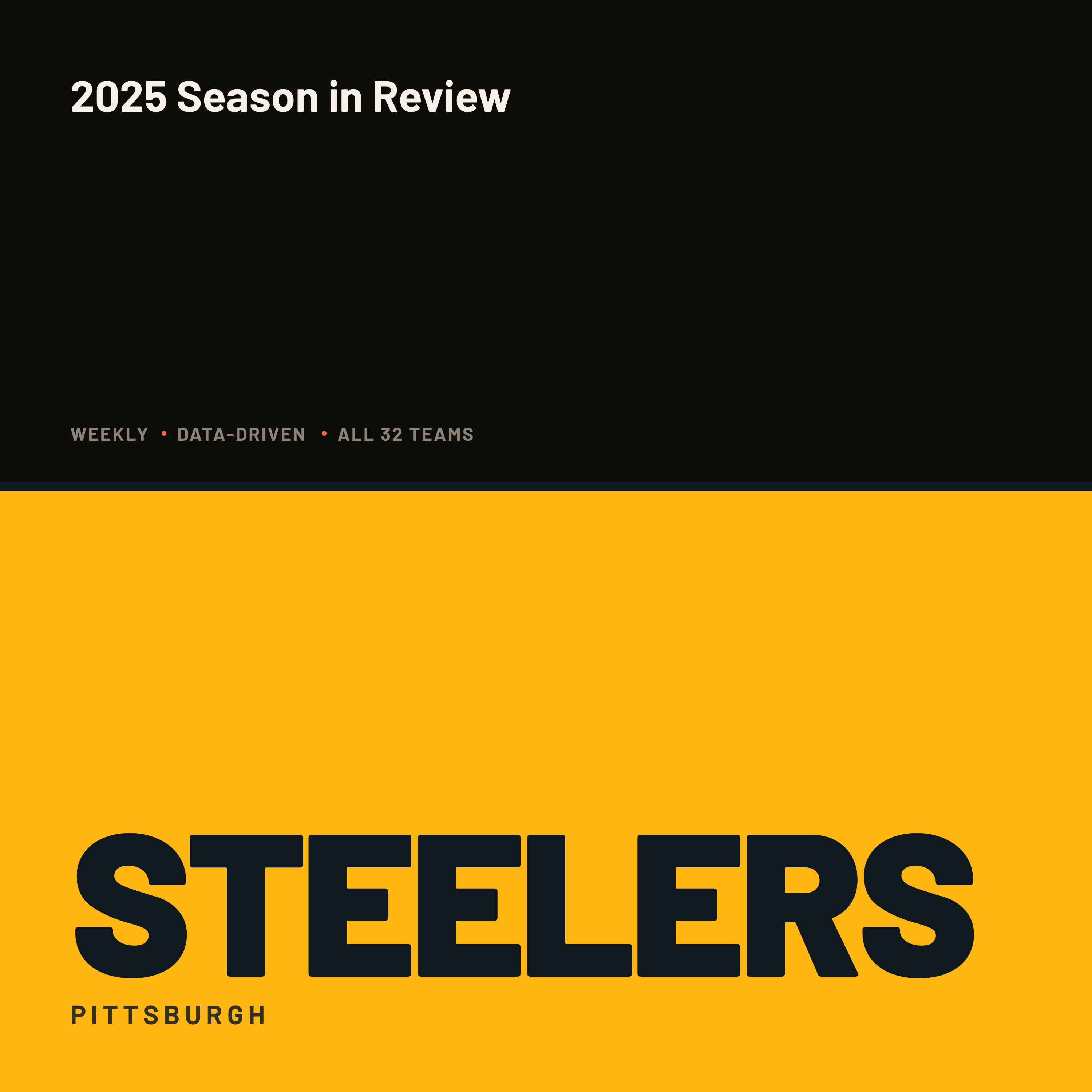 The Pittsburgh Steelers finished the 2025 regular season 10 and 7, won the AFC North for the first time since 2020, and then got smothered in the Wild Card round — a 30 to 6 home loss to the Houston Texans that ended Mike Tomlin's nineteen-year run as head coach. This was the Aaron Rodgers season — the spring signing that dominated headlines, the quarterback gamble that actually worked in stretches, and a year that lived on a knife's edge from September through January. They started 4 and 1, sagged to 6 and 6 by Week 13 with the fanbase booing Renegade and calling for Tomlin's job, then ripped off a Week 14 win in Baltimore and closed on a Sunday Night Football division-clincher against the Ravens in Week 18 to salvage the whole thing. The feel of the year was survival — a Hall of Fame quarterback, one superstar pass rusher, and just enough late-game magic to climb back into games they had no business being in. Then the playoffs arrived, the Texans defense showed up, and the whole operation got muffed on Monday night in the worst home playoff loss in franchise history.